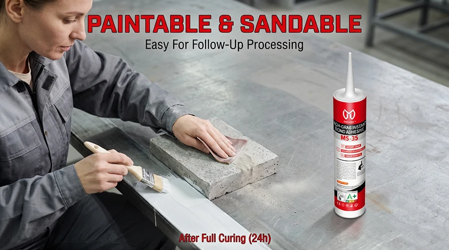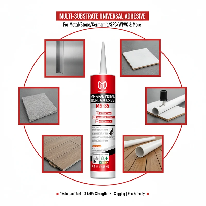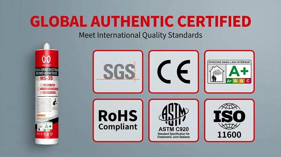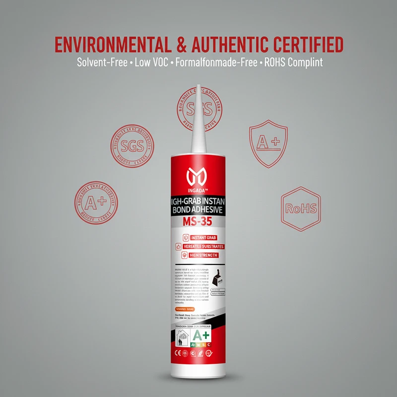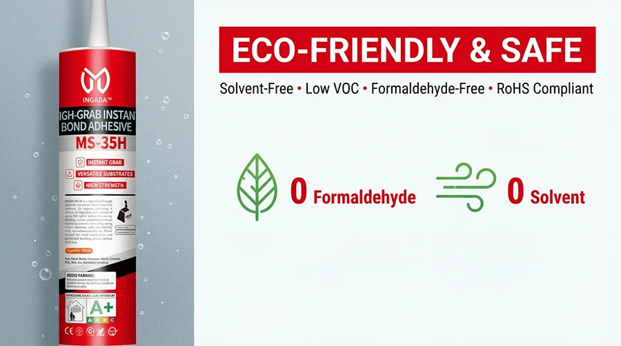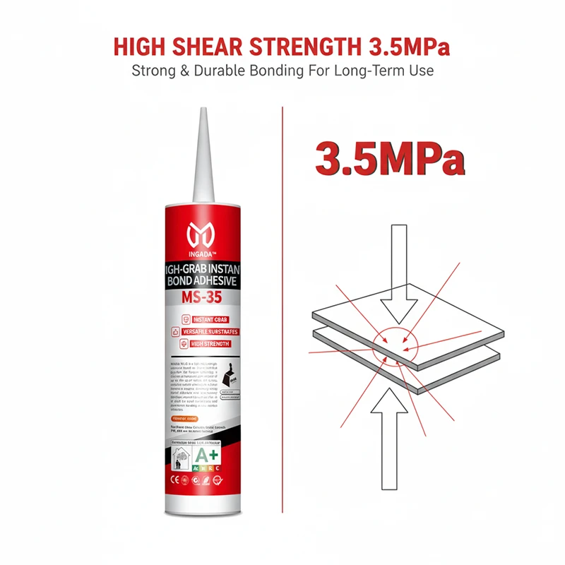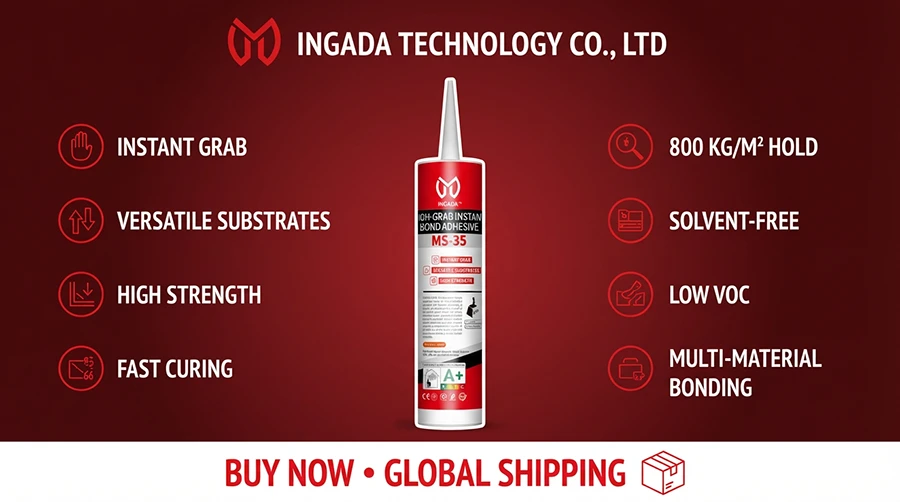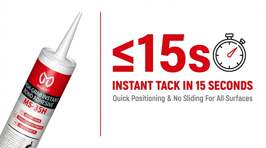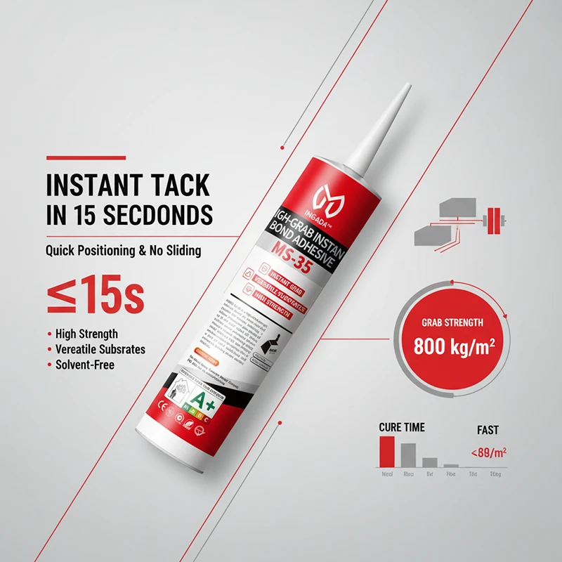 INGADA MS-35H is a high-performance adhesive based on silane-modified polyether technology, offering exceptional instant tack and long-term strength. It provides strong grab within seconds for quick positioning, with no sagging on vertical surfaces. Environmentally friendly, solvent-free, and low in VOC, it is suitable for a variety of substrates including metal, ceramic, SPC, and WPC, making it an ideal choice for efficient installation and reliable bonding.