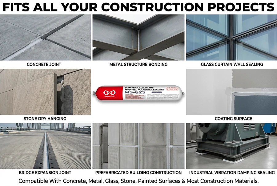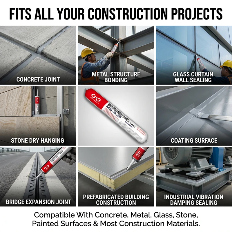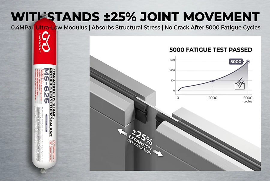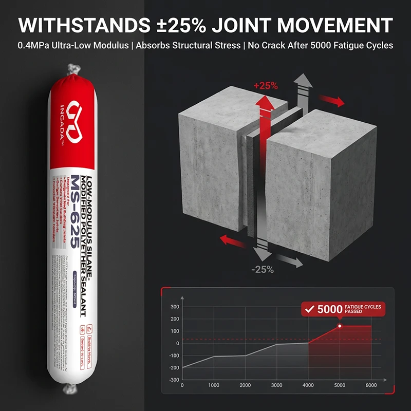 MS-625 is a high-performance, low-modulus sealant designed specifically for joints requiring extreme flexibility and durability. With a 25-grade movement capability (±25%) and a tensile modulus as low as 0.4 MPa, it effectively absorbs structural stress and accommodates significant expansion and contraction. Formulated with advanced silane-modified polyether technology, it is ideal for prefabricated buildings, curtain walls, and infrastructure projects where dynamic sealing and long-term reliability are essential.