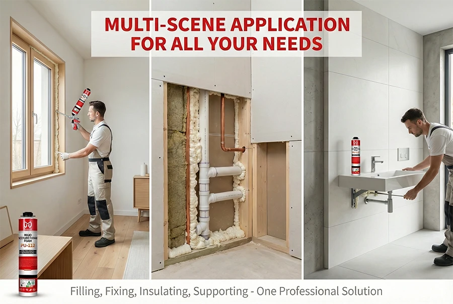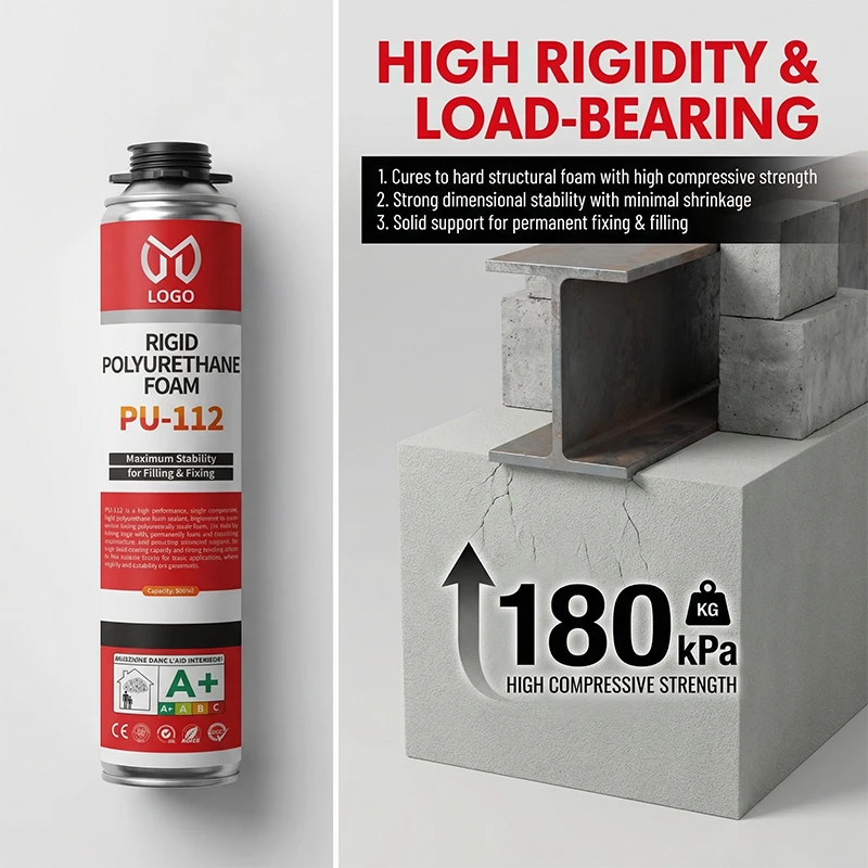 PU-112 is a high-performance, single-component, rigid polyurethane foam sealant. Engineered to cure into a strong, dimensionally stable foam, it is ideal for filling large voids, permanently fixing and insulating installations, and providing structural support. Its high load-bearing capacity and strong bonding make it the reliable choice for static applications where rigidity and durability are paramount.