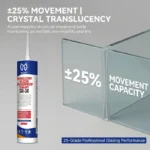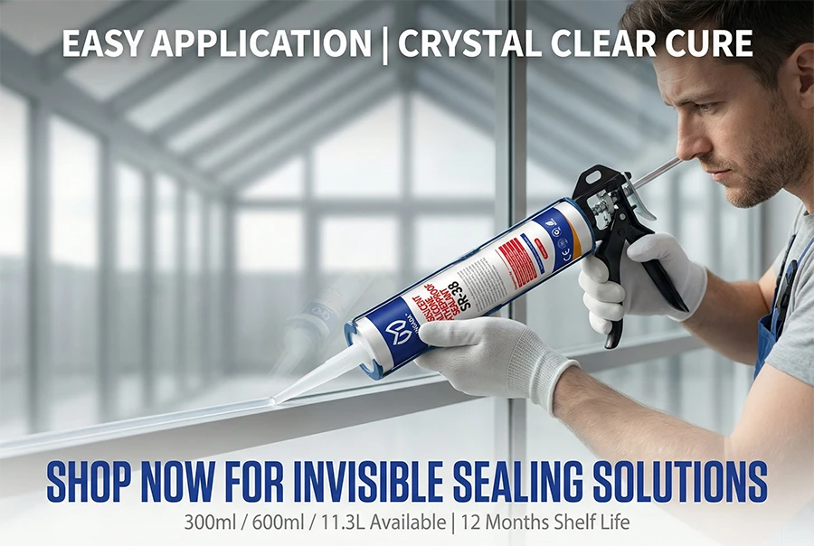 SR-38 is a high-performance, translucent silicone sealant offering 25-grade movement capacity (±25%) along with exceptional optical clarity. Specially formulated for applications where both structural sealing and aesthetic transparency are required, it is the ideal choice for structural glazing in sunrooms, glass roofs, point-supported glass façades, and other architectural features where preserving sightlines and transmitting light are paramount. It provides a durable, UV-stable, and weather-resistant seal that remains discreet and effective over time.