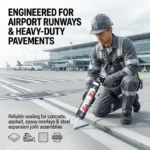 SR-58 is an ultra-high-performance, 50-grade movement silicone sealant engineered for extreme duty sealing of expansion joints, control joints, and cracks in airport runways, taxiways, aprons, and other critical airside pavements. Formulated to withstand heavy aircraft loads, jet blast, fuel spills, deicing fluids, and severe weather cycles, it provides a durable, flexible, and weathertight seal that minimizes foreign object debris (FOD) risks and reduces pavement maintenance. Its tensile strength ensure long-term performance under continuous mechanical and thermal stress.